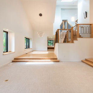 We worked to modernize this space for our clients by renovating the kitchen, bathrooms and main living area. Along with updated finishes throughout the home we crafted custom cabinetry, built-ins, and a reconfigured custom staircase that rejuvenated this home with Scandinavian flare. This home also features a built-out breakfast nook and new open shelving, while the master bath boasts a soaking tub and new cabinets.
